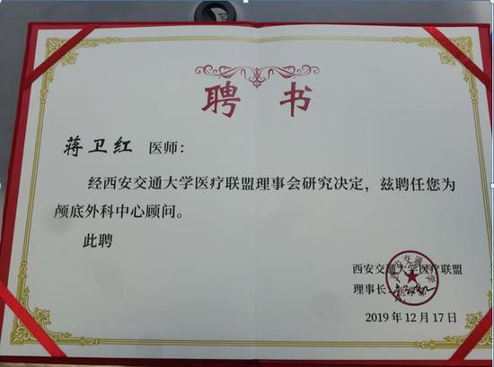 随后,陈腾书记为蒋卫红教授颁发首席顾问聘书。