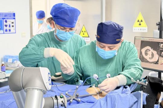 医护人员与孩子们合影