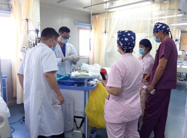 上海海华医院急诊医学科全体医护人员接过生命「接力棒」,在了解患者的术后病情情况后,迅速制定治疗方案。先给患者安排全面的生命监护,再行「深静脉穿刺置管术」建立静脉通道。