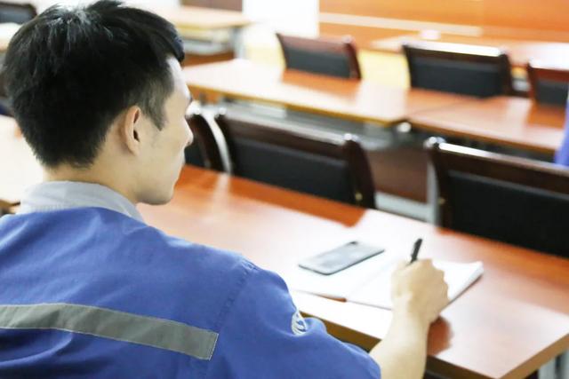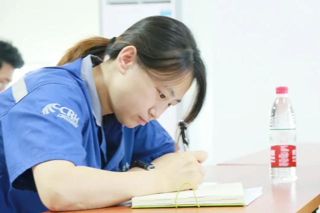 上海动车段职工们认真地记录笔记中