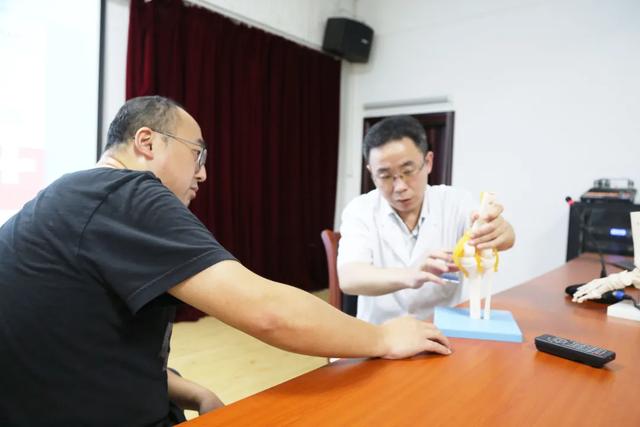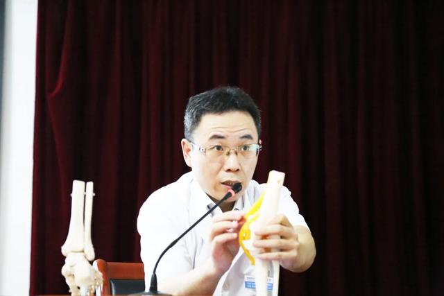 讲座当中,邬守凯主任充分利用手中的模型,生动形象地为职工们讲解知识中的疑难点,让他们对踝关节扭伤有了更具体的认识。上海动车段的职工们也都认真严肃地记录笔记,不遗漏邬医生讲解的任何一个知识点,整个讲座现场洋溢着学术的气息。