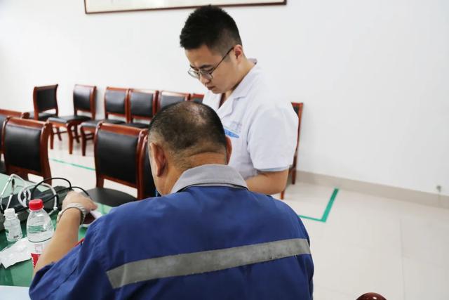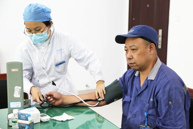 △门诊护士为职工们测量血压血糖