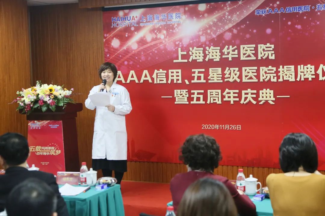 此次 AAA 信用/五星级医院揭牌仪式暨五周年庆典由上海海华医院副院长马凤姝主持。