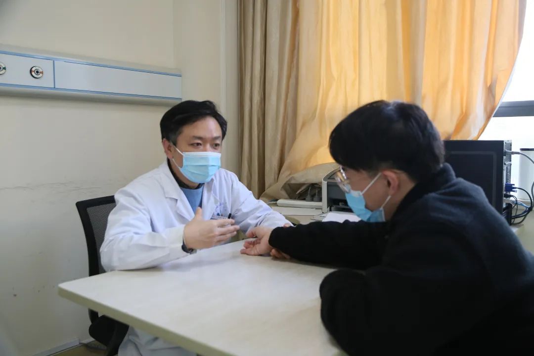 张弋在上海海华医院坐诊,细心聆听患者情况