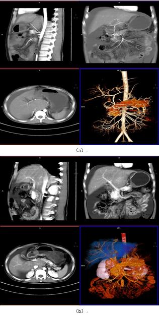 图 2:一体化成像扫描肝动脉、门脉显像(VRT/MPR)