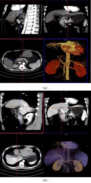 图 1: 中心常规肝脏 CT 增强动脉、门脉显像(VRT/MPR)