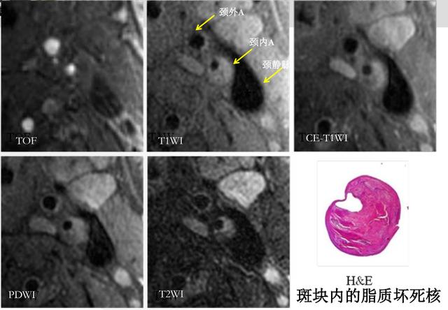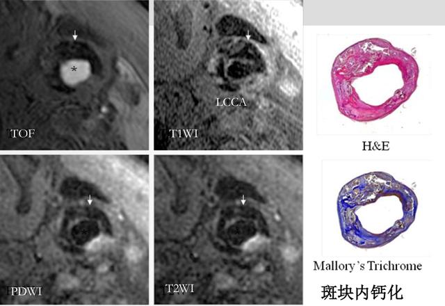 动脉斑块分为稳定斑块与易损斑块,其中易损斑块是指那些不稳定和有血栓形成倾向的斑块,容易脱落引起多数急性心血管事件。易损斑块的特征包括:薄的纤维帽、大且富含脂质的坏死核、斑块内出血、溃疡及突向管腔的钙化结节。传统的血管成像方式如磁共振MRA、CTA、DSA等均只能显示管腔狭窄情况,不能观察血管壁具体情况。