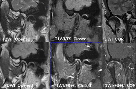 MRI:可清楚、全面地反映关节结构及附件组织的变化。MR 动态电影能够很好地显示关节盘、髁状突的运动情况