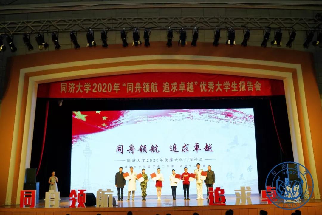 近日,同济大学 2020 年「同舟领航 追求卓越」优秀大学生报告会在四平路校区大礼堂举行。经过层层遴选,全校共 6 名学生入选「同济大学 2020 年优秀大学生报告团」,同济大学附属同济医院 2018 级博士生黄润之入选其中,并在报告会上结合自身经历分享了大学生活和成长历程,为 2020 级 4400 余名本科新生上了一堂生动的朋辈思政课。