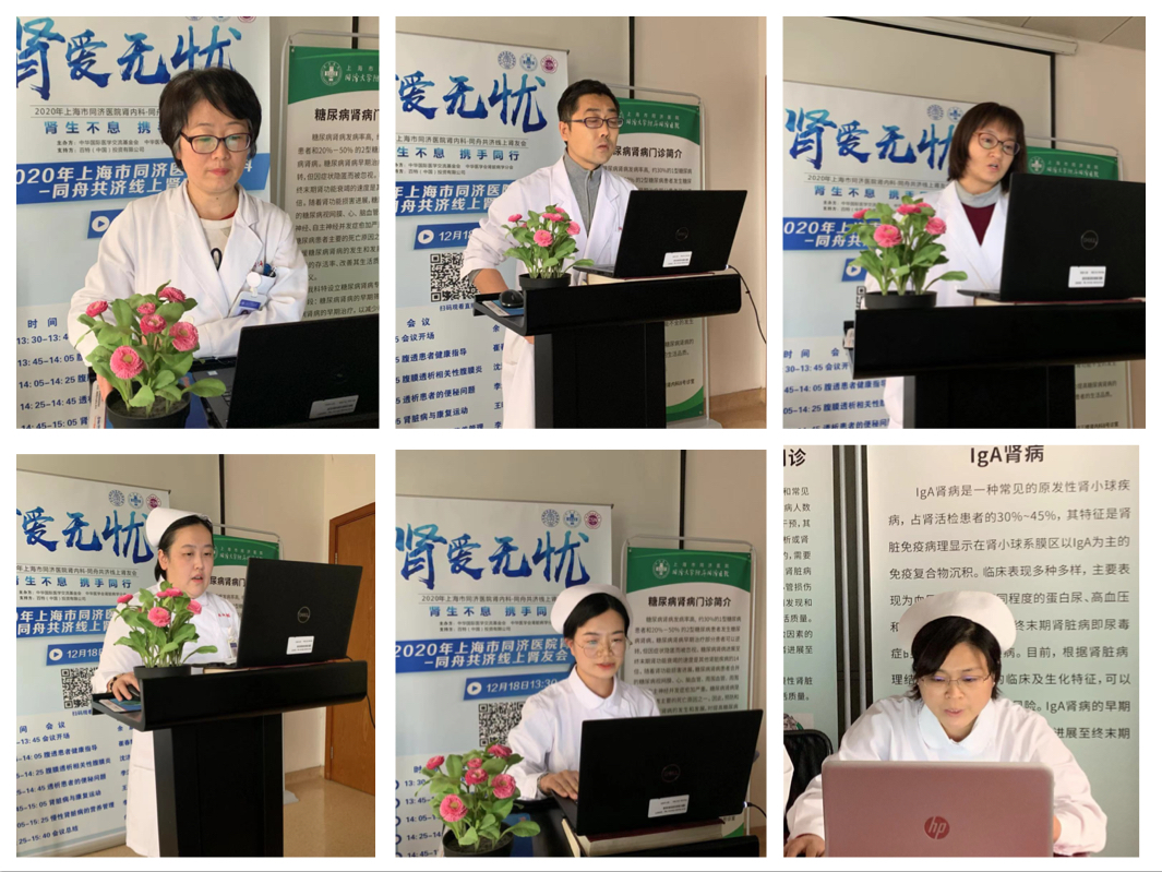 2020 年 12 月 18 日下午,同济大学附属同济医院肾脏内科在甘泉楼五楼示教室举办了主题为「肾爱无忧,同舟共济」的线上肾友会活动,共有数百人在线参加。由于新冠疫情的原因,本次肾友会一改往年线下模式,改为在线上举办。