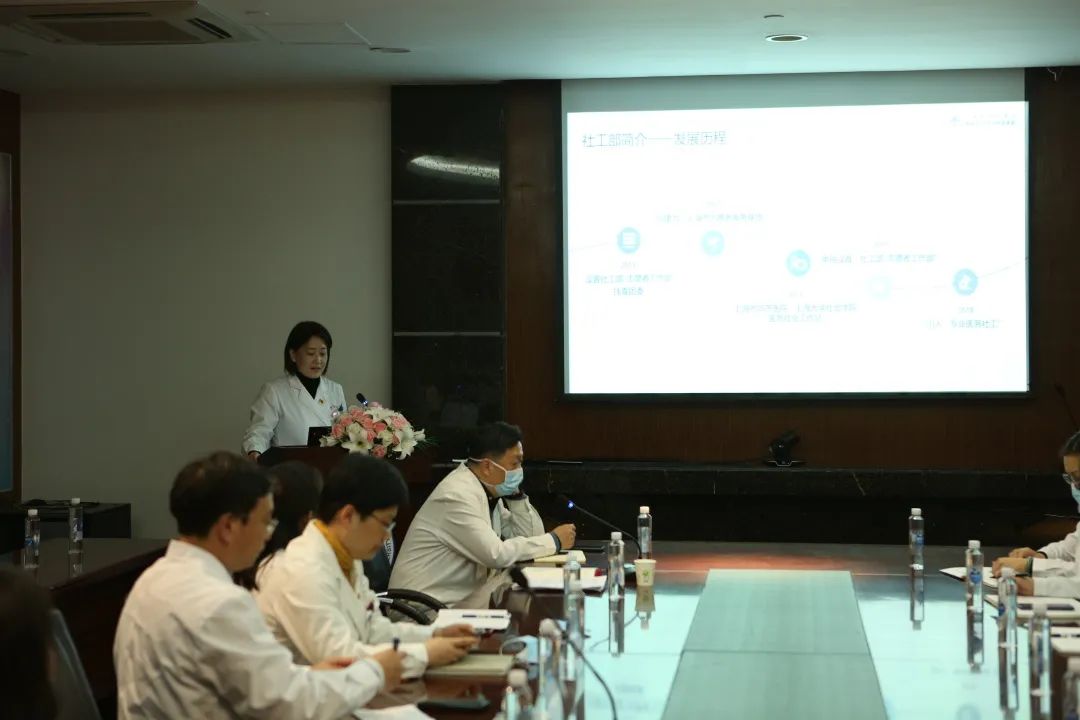 会上,首先由梅竹介绍了社工部从 2012 年挂靠团委到 2017 年独立设置,引入专业医务社工,打造「医务社工+」的服务模式,从服务科室、服务对象到服务内容都有了扩展和深化,在志愿服务文化建设、社工助力「全人、全过程」关怀、医疗救助与公益慈善等方面都取得了一定的工作成效。