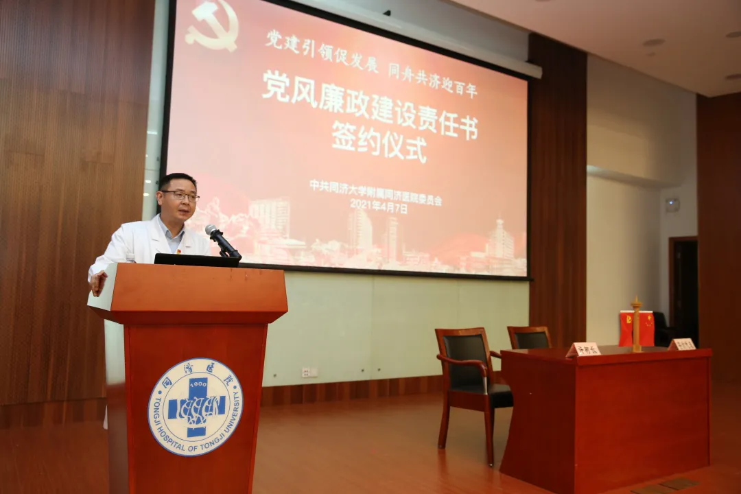 4 月 7 日下午,同济大学附属同济医院召开 2021 年党委工作会议暨党史学习教育动员大会。会议以「党建引领促发展 同舟共济迎百年」为主题,对 2020 年医院各项党建工作进行了总结回顾,并对 2021 年的各项工作进行全面部署。院党委班子、支部书记、院聘中层干部、各党派负责人、党员代表等 150 余人出席会议。会议由副院长高源主持。