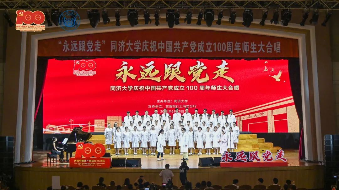 6 月 15 日,同济大学庆祝中国共产党成立 100 周年师生大合唱在同济大学四平路校区大礼堂举行,来自同济大学各学院、各直属和附属单位的 50 支队伍、共 3000 余名师生共同唱响红歌经典,抒发爱党爱国情怀。同济大学附属同济医院与同济医院分院的参赛曲目《我的中国心》在比赛中荣获一等奖。