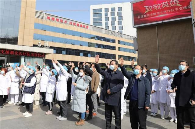 河北医科大学党委书记翟海魂、党委副书记倪铁军,医院党委书记张振宇等全体院领导、职能部门全体中层、相关临床科室人员及部分家属等到场为医疗队送行,仪式由院长赵增仁主持。