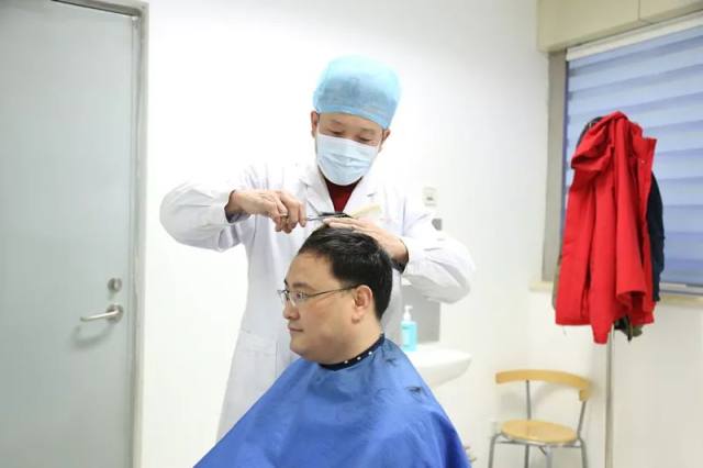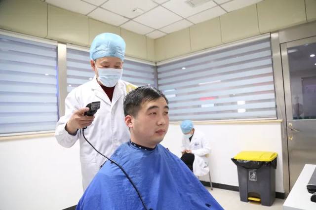 在医院给职工开放的简易理发服务店,部分队员们剪短了头发,对着自己清爽的发型,魏伟医生说:「这样头发清爽多了,如果到那边要去重症监护,我就再把头发剃光了。」李卫医生在剪完头发后,第一时间就把自己的照片发给了急诊科的爱人靳小静医生。