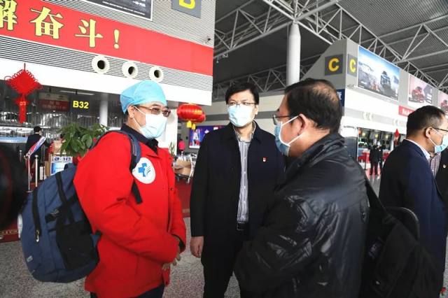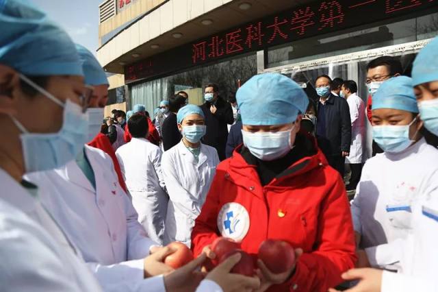 河北医科大学党委书记翟海魂做重要讲话:「今天第一医院 20 名医护人员将要赴湖北参加武汉会战,我代表河北医科大学向同志们表达衷心感谢和崇高敬意!作为一名医者,在国家危难之际,你们挺身而出,用自己的实际行动践行初心使命,体现医学誓言。相信你们能够以高尚的医德,精湛的医术,良好的沟通协作,圆满完成任务。学校和医院期待你们平安归来!」