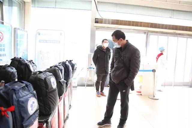 临行前,医院为 20 名支援湖北医疗队队员进行了周全的准备,大家分别去放射科、心脏超声科、心功能室、检验科、普外一科进行身体的检查以及注射干扰素,随后去物资处领取医院为大家准备周全的物资行李。