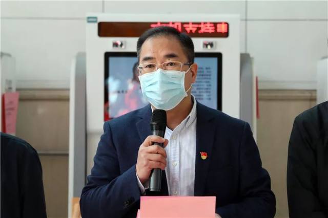 翟海魂书记向第一医院支援湖北医疗队授旗。