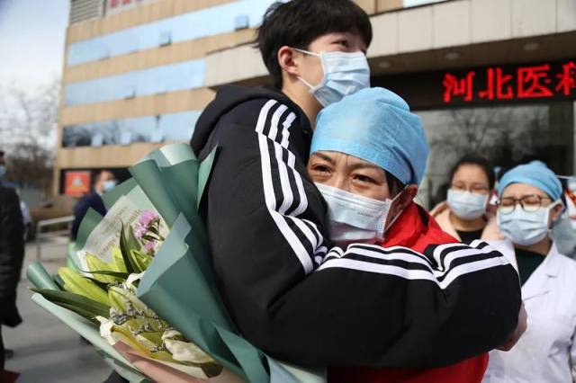 田惠玉主任高大帅气的儿子手捧鲜花来送行,他说:「等着妈妈回来,我要回学校跟同学炫耀,我的妈妈是一名逆行英雄。」