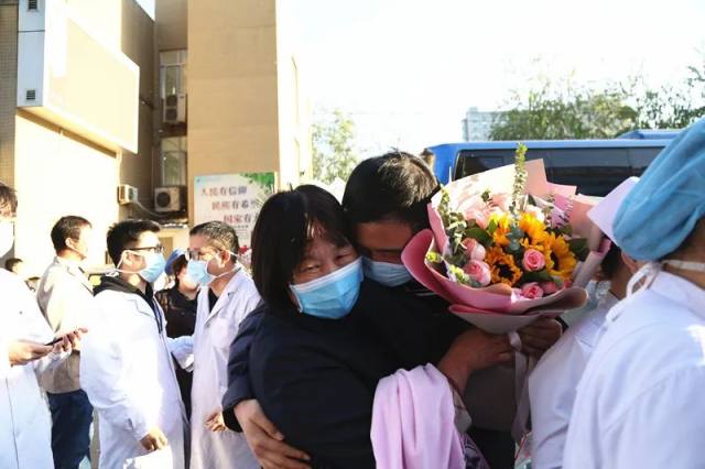 用英雄们的抗疫精神激励鼓舞每一位员工,形成凝聚力、战斗力、向心力,让医院、科室和每个人的工作同力同向同频道。另外,医院还安排 15 位英雄从明天起在家休息两周。