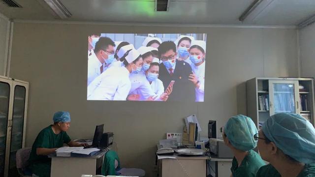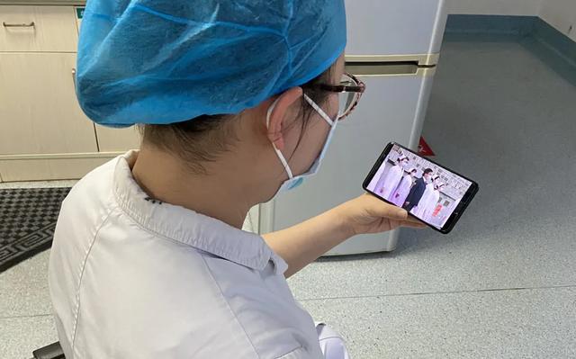 在庆祝大会分会场,部分护理人员采取线上观看,参与活动中来。另有其他未能到场的职工,通过手机直播进行观看。