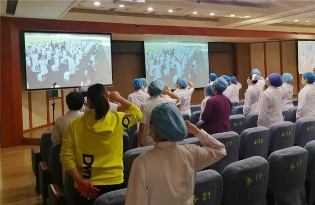根据疫情防控需要,为减少人员聚集,庆祝大会设置室外主会场,同时设置分会场。并采用视频直播的形式,更多的科室和个人通过线上观看参与到庆祝活动中来。