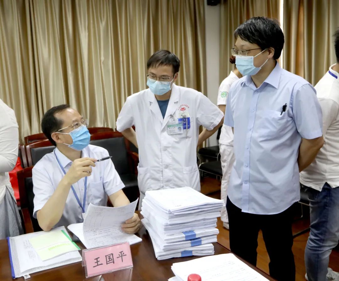 汇报和培训结束后,专家们分为 5 组,深入走访了急诊科、神经内科、卒中绿色通道、心血管内科、内分泌科、神经外科、放射科、介入室、康复医学科、检验科、超声医学科等卒中相关科室,通过对相关人员进行访谈,现场检验卒中绿色通道和卒中应急处置流程,查看管理台账资料与管理制度、调阅病历、核查 DNT 时间和卒中绿色通道质控表、急诊 CT 时间等方式对桂林医学院附属医院高级卒中中心建设情况进行了全面细致的督查,实地评估及科学指导。