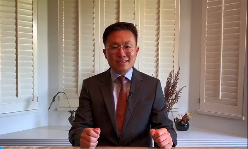 在这个令人欢欣起舞的日子,远在太平洋彼岸的北京爱康集团董事长王东博士,通过远程视频作了开场致辞。