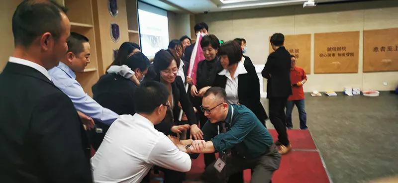会后,王东博士热情地参与了室内拓展活动,与大家做了许多欢快的团队游戏。虽是游戏,但现场竞争尤为激烈,你追我赶,斗志昂扬,赛出了爱康人团结向上、敢于拼搏的品格!