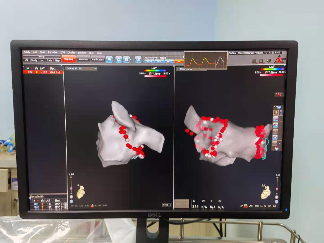 2020 年 11 月 21 日,心血管技术团队为李爹爹实施经皮穿刺导管房颤射频消融术,在成功穿刺房间隔后,在 CARTO3 系统指导下,以 LASSO 电极行左心房三维建模,采用压力感应消融导管对双侧肺静脉环形消融,并实施电隔离术,直至肺静脉与左房完全电隔离,李爹爹的房颤也终于转为了正常心律。