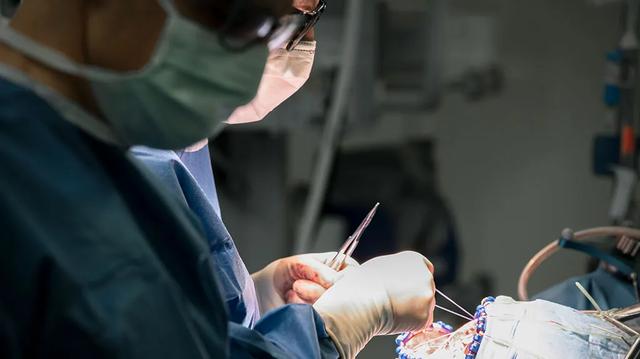 在外科医生检查肿瘤腔的同时麻醉师们正在监测患者的生命体征