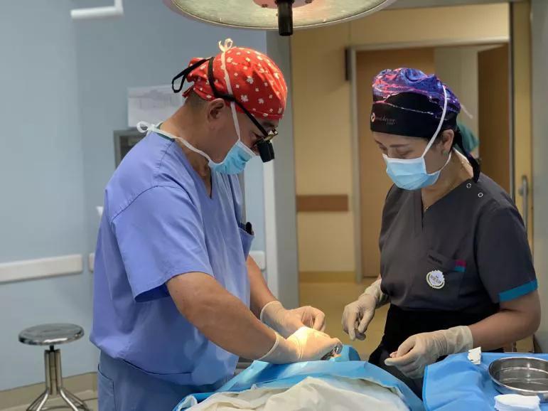 2020 年 10 月 28 日到 11 月 1 日,张菊芳主任跟随「母亲微笑行动」再次启程,在短短的 3 天时间里,他们将要为广西南宁贫困地区的 128 名患儿实施唇腭裂修补手术。医疗志愿者们的工作强度巨大,平均每天长达 12 小时以上的手术时长。张主任三天手术戴了三天腰托,靠着信念在坚持。是否辛苦?几乎一致回答都是不算啥。可是怎能不辛苦,但辛苦不是全部。