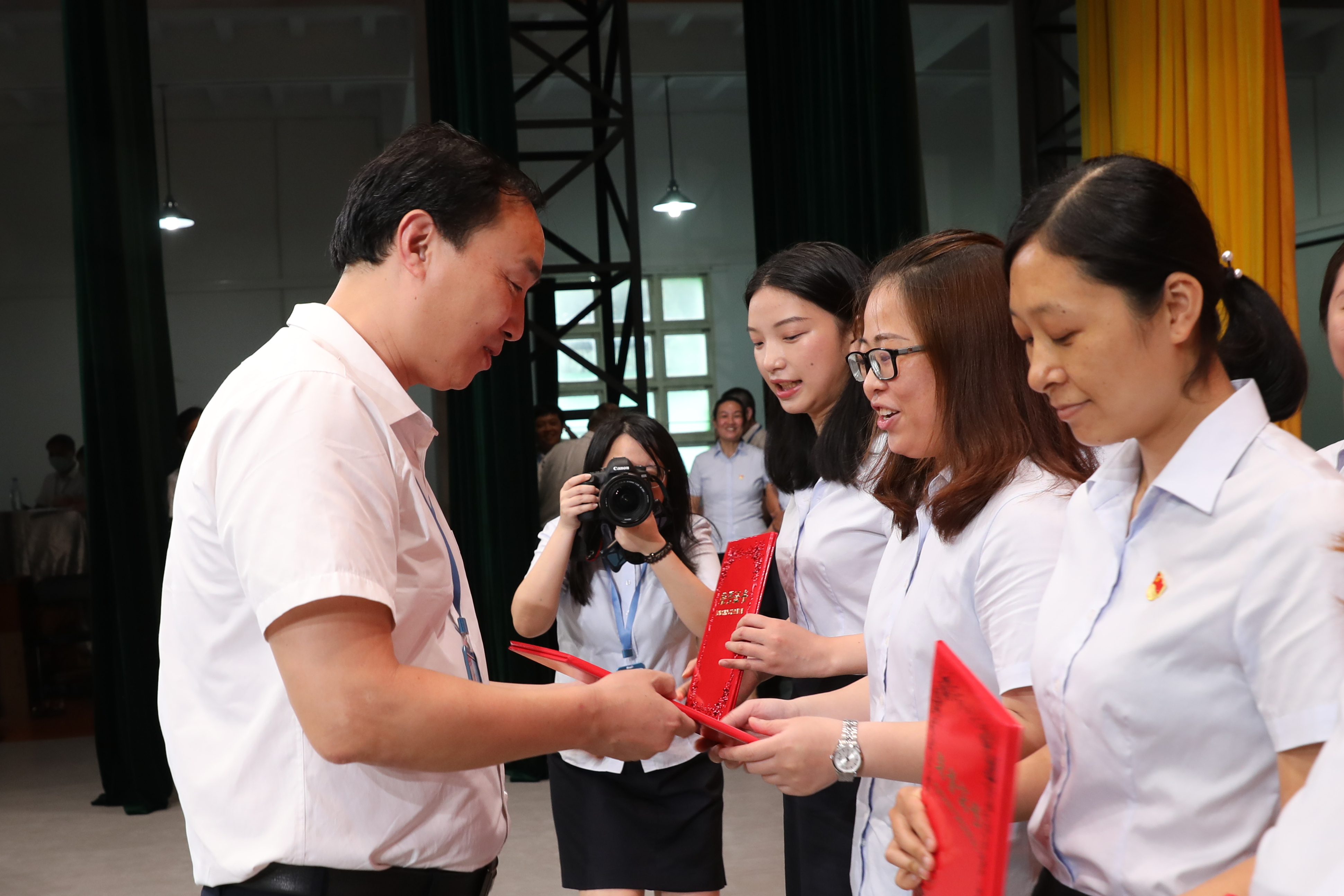 全体领导班子成员为南溪山医院 2020 年 20 名抗击疫情后勤服务之星颁发荣誉证书