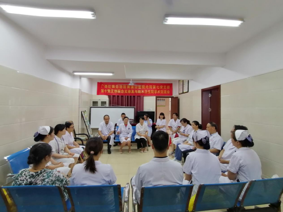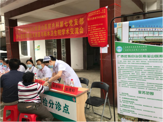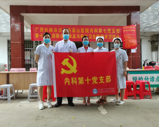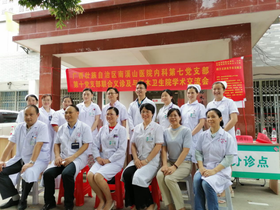 值此「七一」来临之际,广西壮族自治区南溪山医院内科第七党支部、第十党支部响国家之号召、应党员之义务、执医者之仁心、弘南医之精神,在柘木镇卫生院联合开展「不忘初心、牢记使命」暨庆祝建党 99 周年党员义诊活动,以实际行动诠释新时期卫生系统党员干部心系群众、服务基层的优良传统和奉献精神。