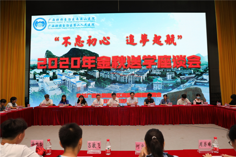 一年一度的高考结束了,广西壮族自治区南溪山医院喜讯频传,一批职工子女在高考中发挥出色,即将步入高等学府深造。9 月 8 日上午,该院举办了「不忘初心、追梦起航」2020 年金秋送学活动。获全日制本科院校录取的 30 多名职工子女及其家长、医院党委书记戴前富,党委副书记、院长刘宇军、副院长李朝旭及党办、院办、工会、团委、宣传科等职能部门人员参加了此次活动。