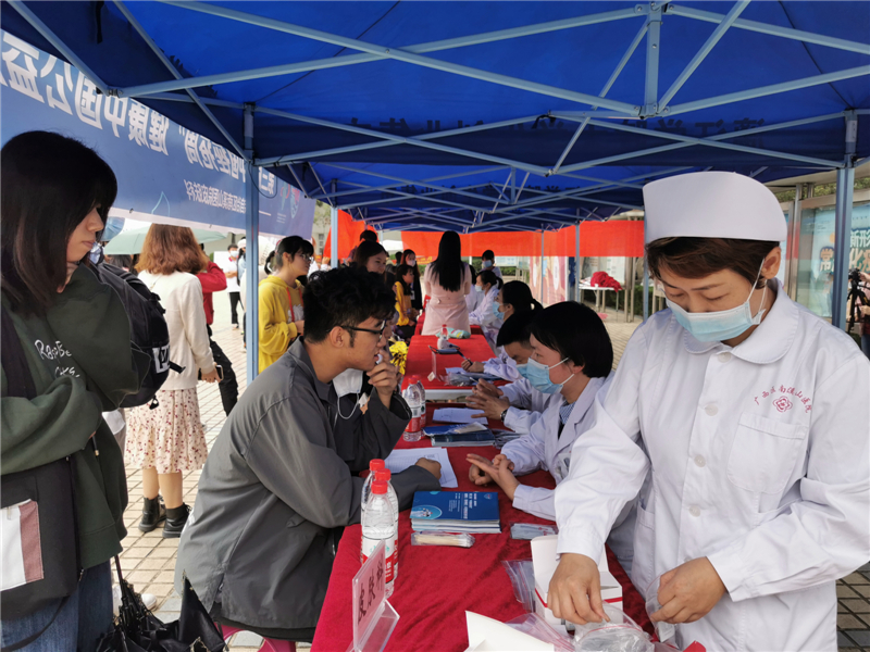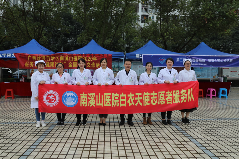 9 月 25 日上午,正值中秋、国庆双节来临之际,广西壮族自治区南溪山医院白衣天使志愿者服务队来到广西师范大学漓江学院开展健康义诊活动,服务涉及皮肤科、康复医学科、耳鼻喉科、妇科等专科。义诊现场一直阴雨绵绵,可氛围却非常浓厚,闻讯前来问诊的师生络绎不绝,此次活动得到了广大师生的高度认可。