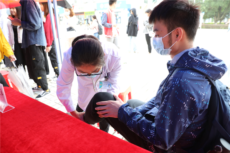 义诊开始前,已有不少需要咨询的同学提前到场等候,医生到位并快速摆好看诊用品后开始义诊活动,学生已自觉排队等候问诊。面对师生的健康咨询,医生们细心问诊,耐心了解,认真给予诊断并提供健康咨询与治疗方案建议。「我是学设计的,颈椎酸疼有一年多了,时好时坏,校团委发通知告知我们南溪山医院开展义诊活动,我就过来看看,康复医学科的专家,细致地询问了我的生活作息习惯,并为我初步进行了检查,并耐心告诉我要规范作息,长时间伏案设计时,要注意定时活动颈椎,并手把手教会了我一些康复动作,非常受用。」一位男同学在咨询专家后表达了极高的满意度,「这样的义诊进校园活动真是很实在,不仅替我们省了挂号费,还节省了往返医院的费用和时间。」