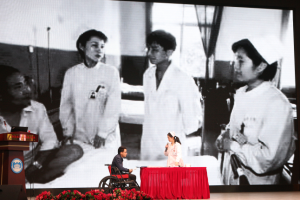 医学影像学专业硕士原倩,规培学员唐晓霞、范然鑫采用小品形式的演讲