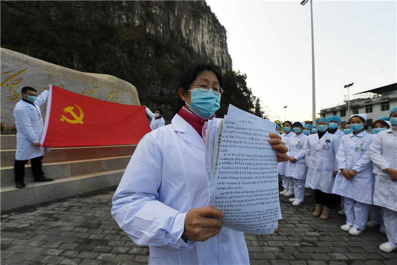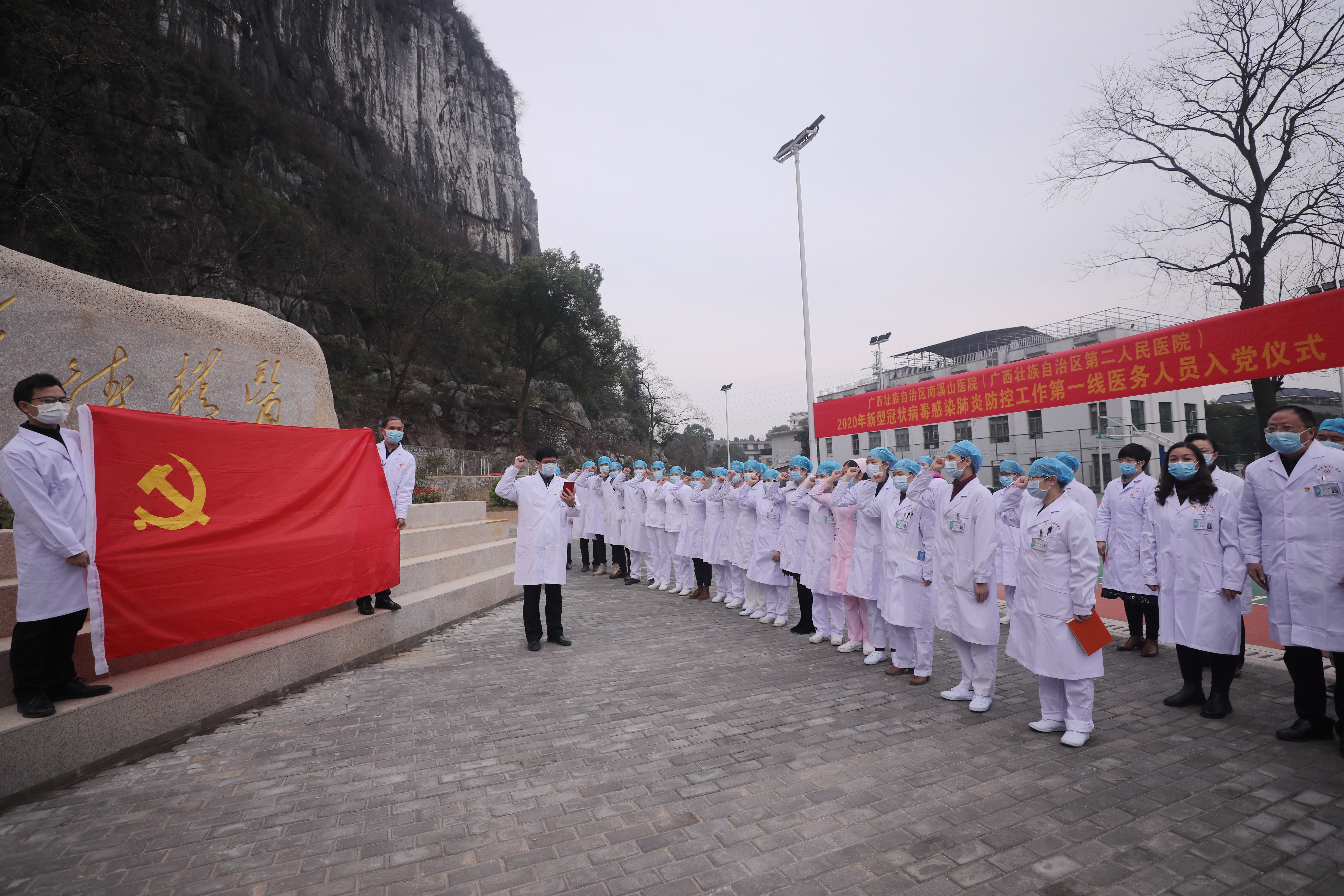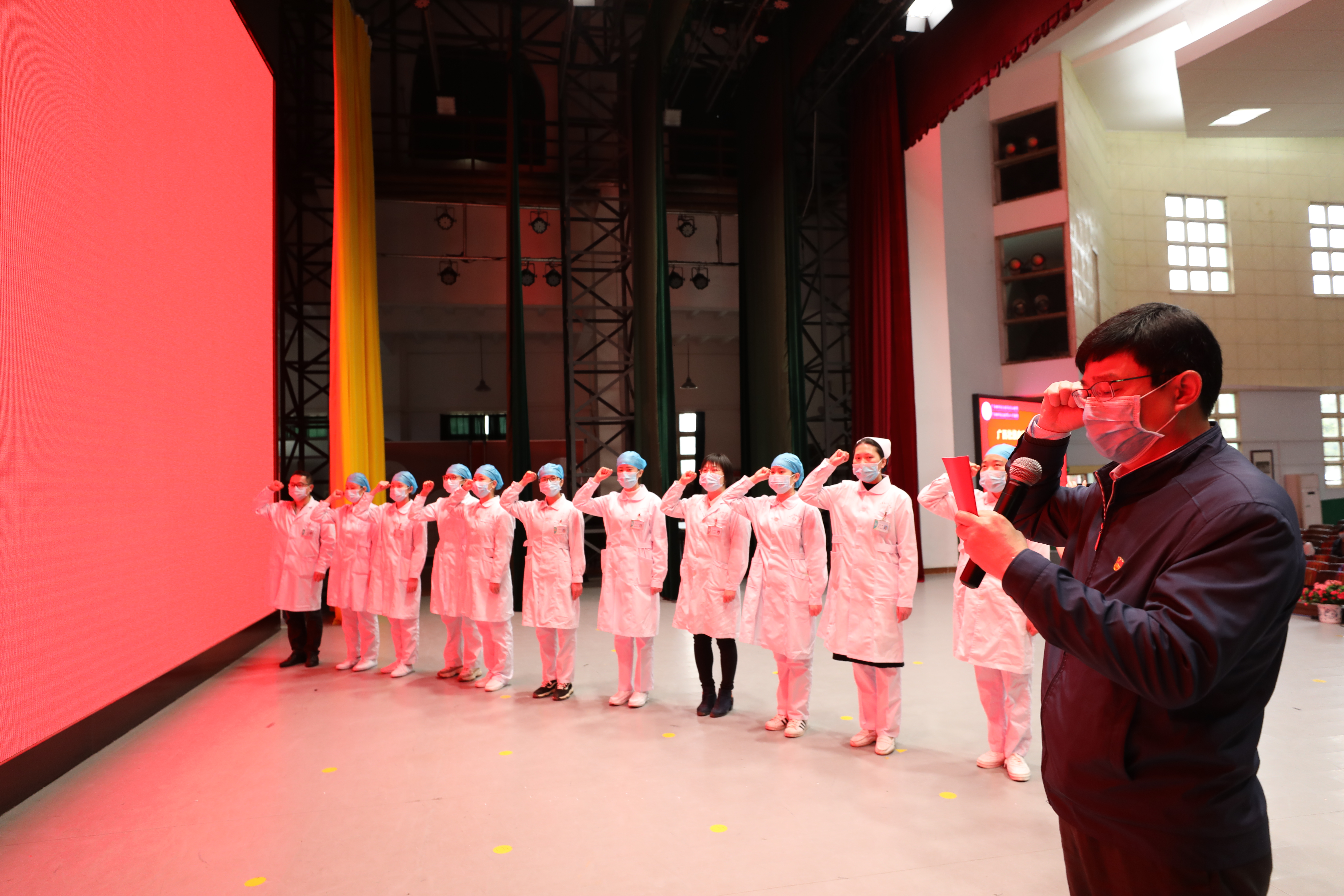 2020 年 2 月 1 日, 21 名抗击疫情一线的医务人员在医院党委书记戴前富的带领下宣誓入党