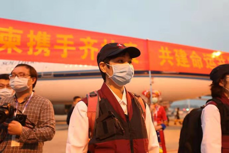 2020 年 3 月 23 日,自治区南溪山医院护理专家管起招作为中国赴柬埔寨抗疫医疗专家组一员出征柬埔寨,与当地政府人民同心抗疫,共克时艰