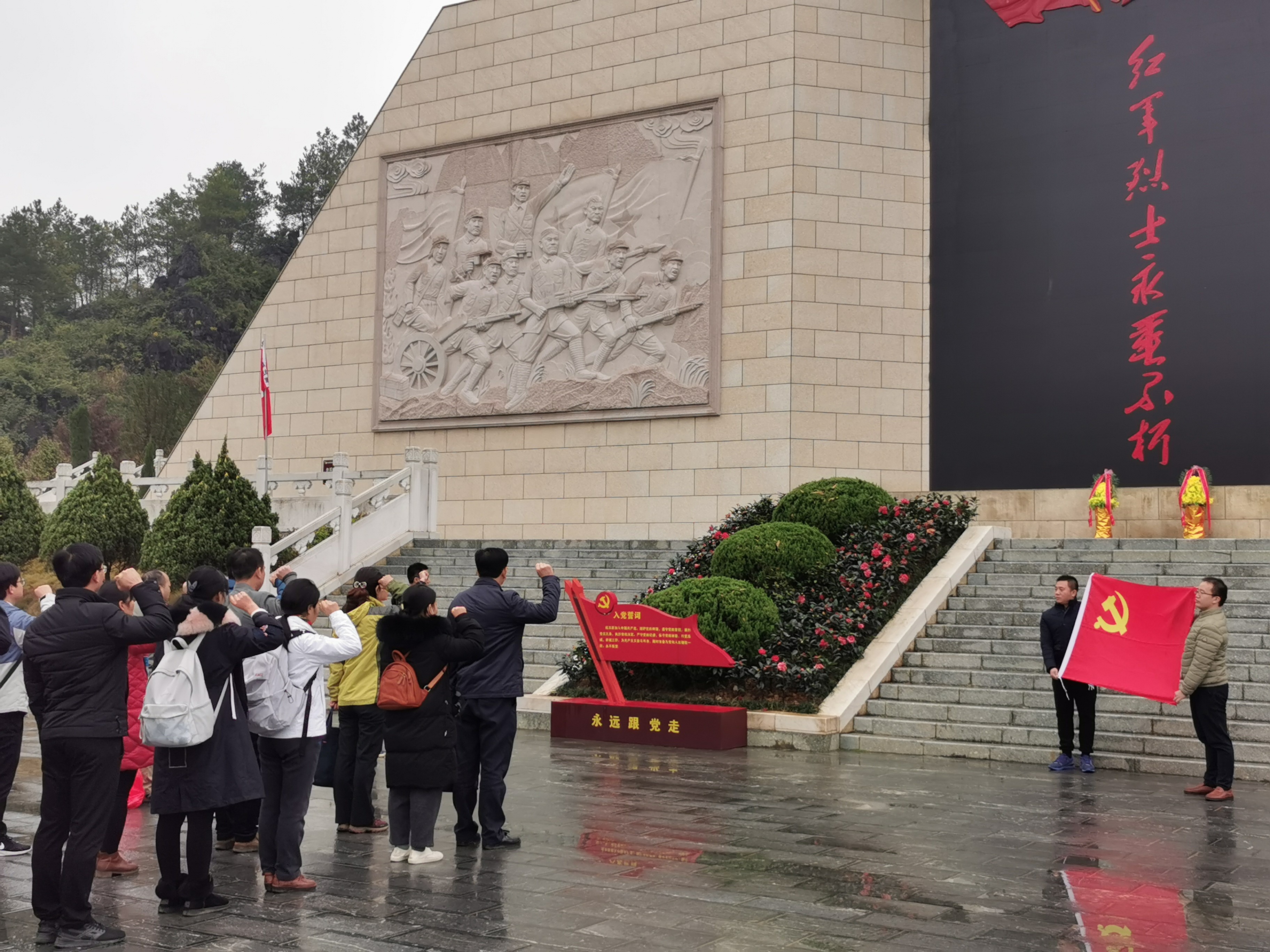 全体党员面向党旗在烈士墓前重温入党誓词