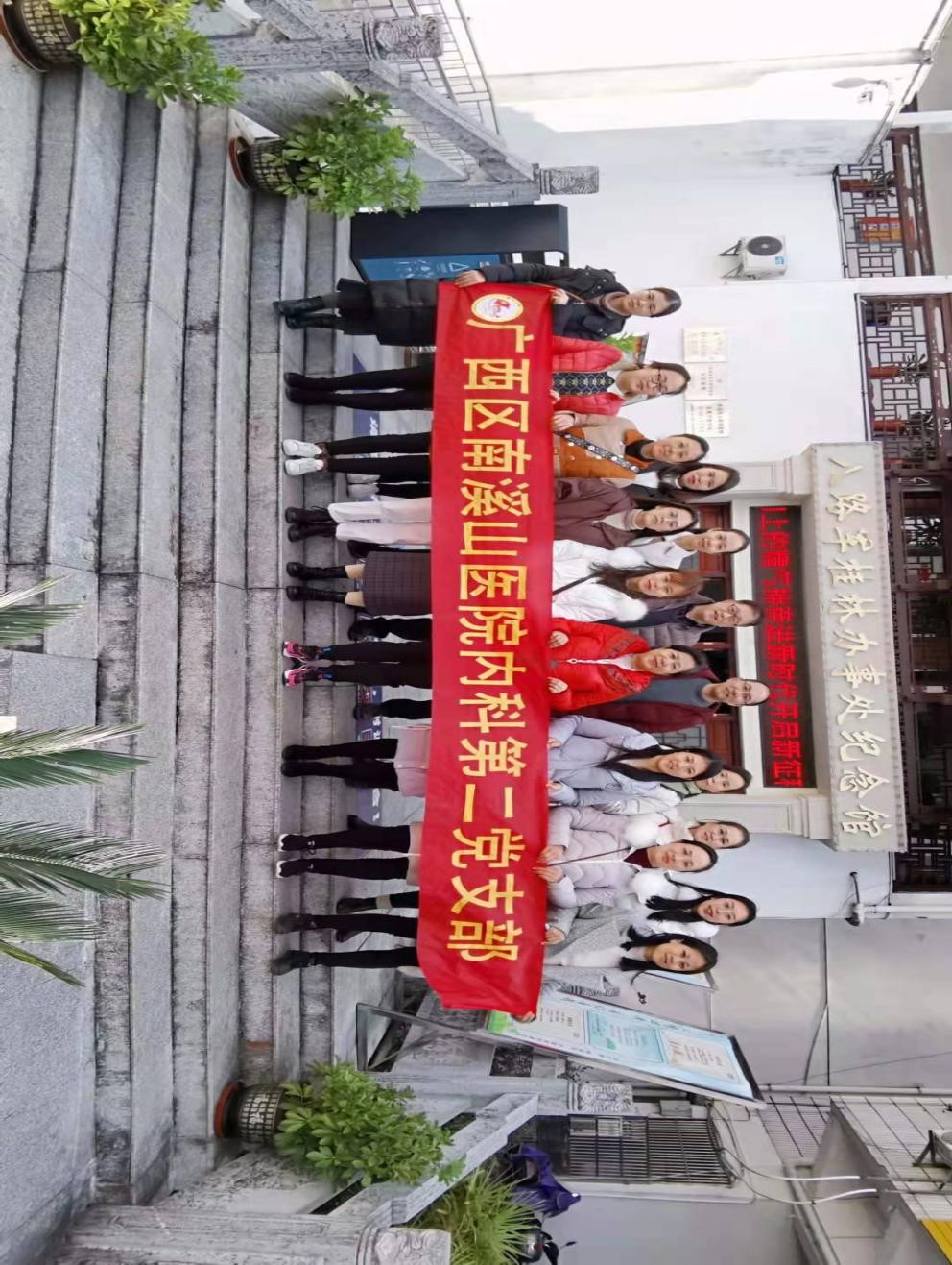12 月 24 日,广西壮族自治区南溪山医院内科第二党支部组织支部党员、入党积极分子及青年文明号成员到八路军桂林办事处旧址开展「缅怀先烈,牢记使命」党建教育活动。