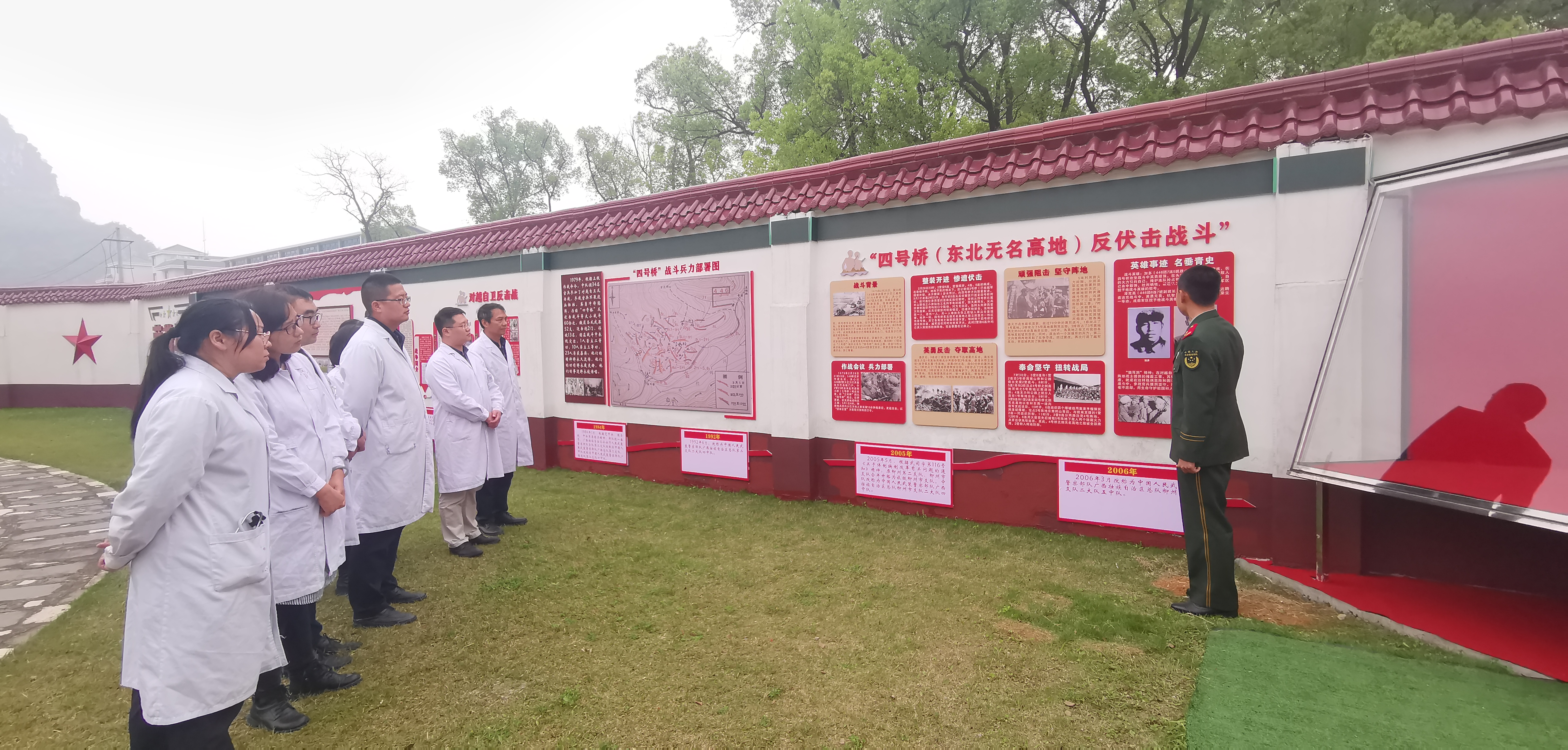 随后,在中队领导的引领下,医院的党团员还参观该中队的荣誉墙。大家看到中队发展的辉煌历史,无不为一中队官兵发扬光荣传统,艰苦创业、努力拼搏所取得成绩感到感动和骄傲。在座谈中,双方领导都表示,新时期的军民共建和军地融合工作需要不断创新,必须认真按照上级党组织对党史学习教育活动和党建工作的要求,结合各自单位的工作特点,结合部队官兵和医务人员的需求,不断拓宽丰富活动内容,使双方的共建在原来良好基础上再上新台阶,为桂林市精神文明建设增添光彩,为建党 100 周年献礼。