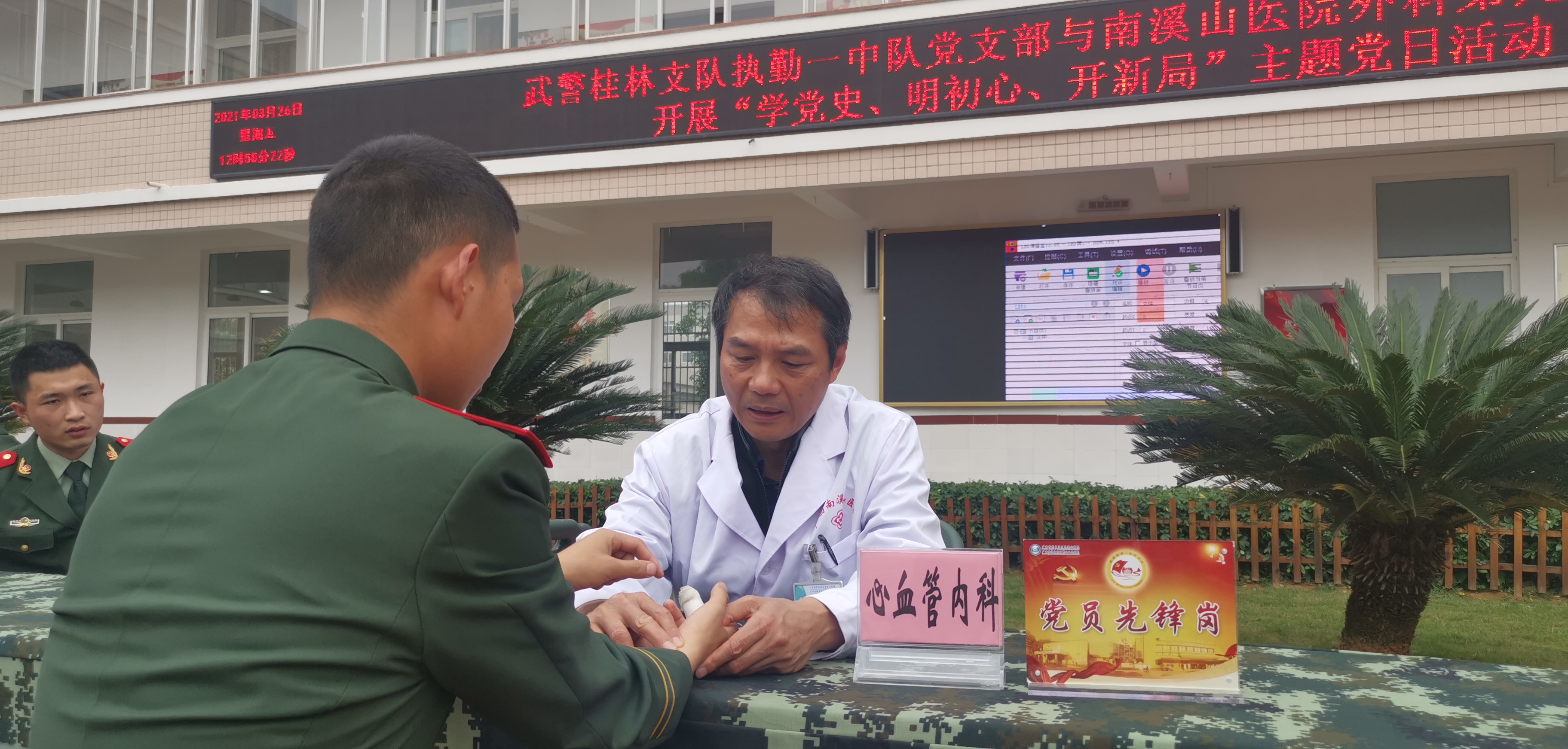 南溪山医院党员医生为战士检查肩部疾病