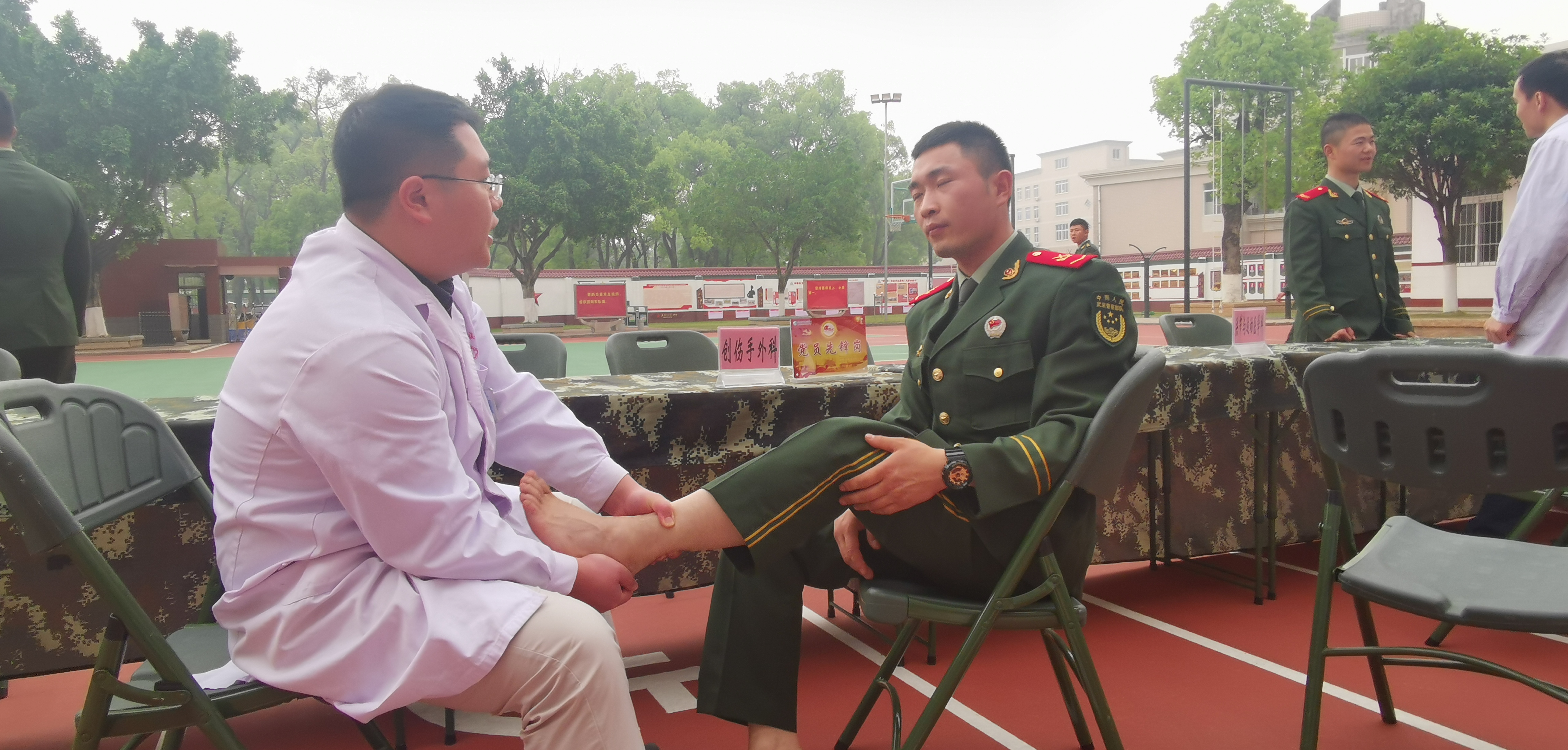 南溪山医院骨科医生现场为武警战士检查