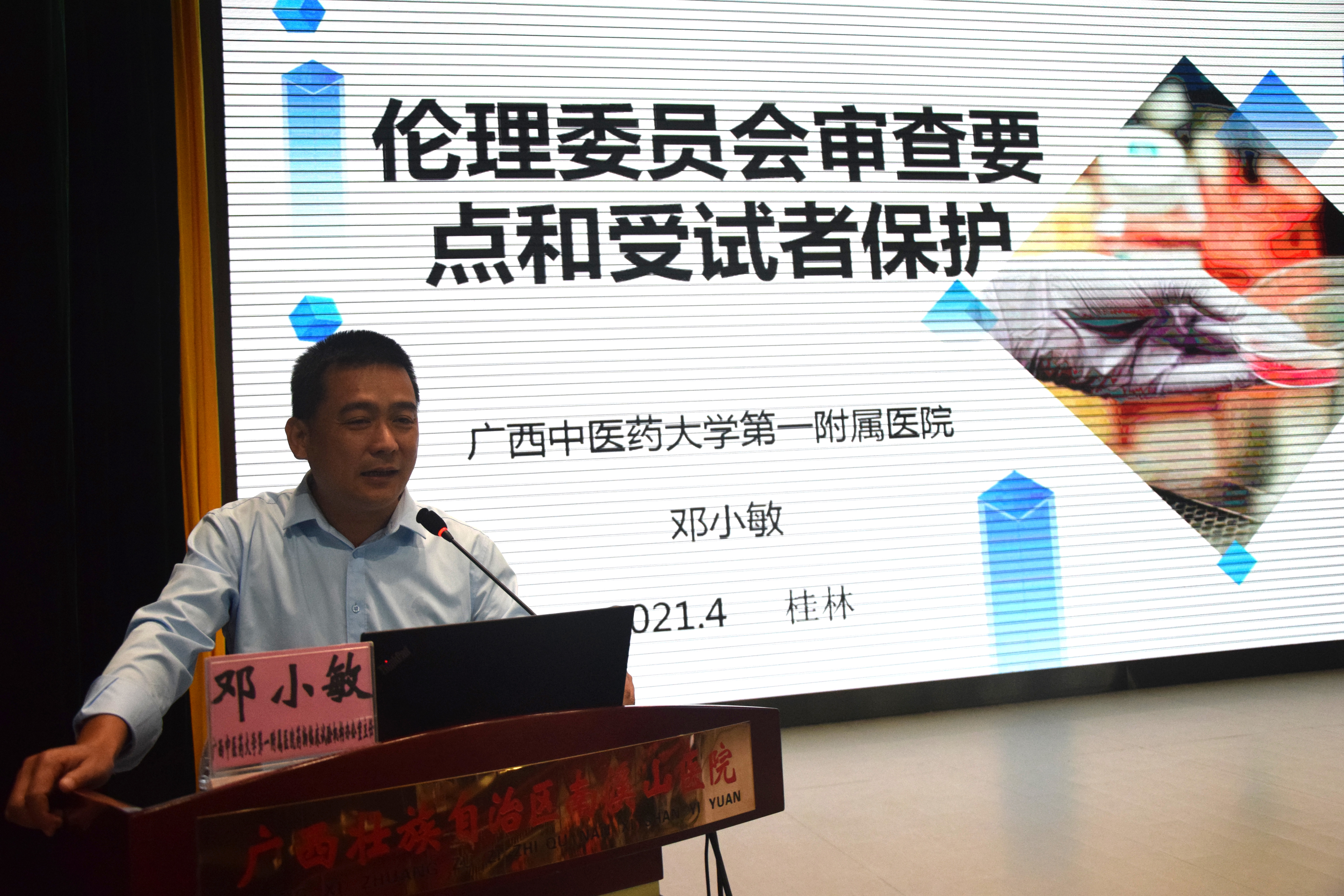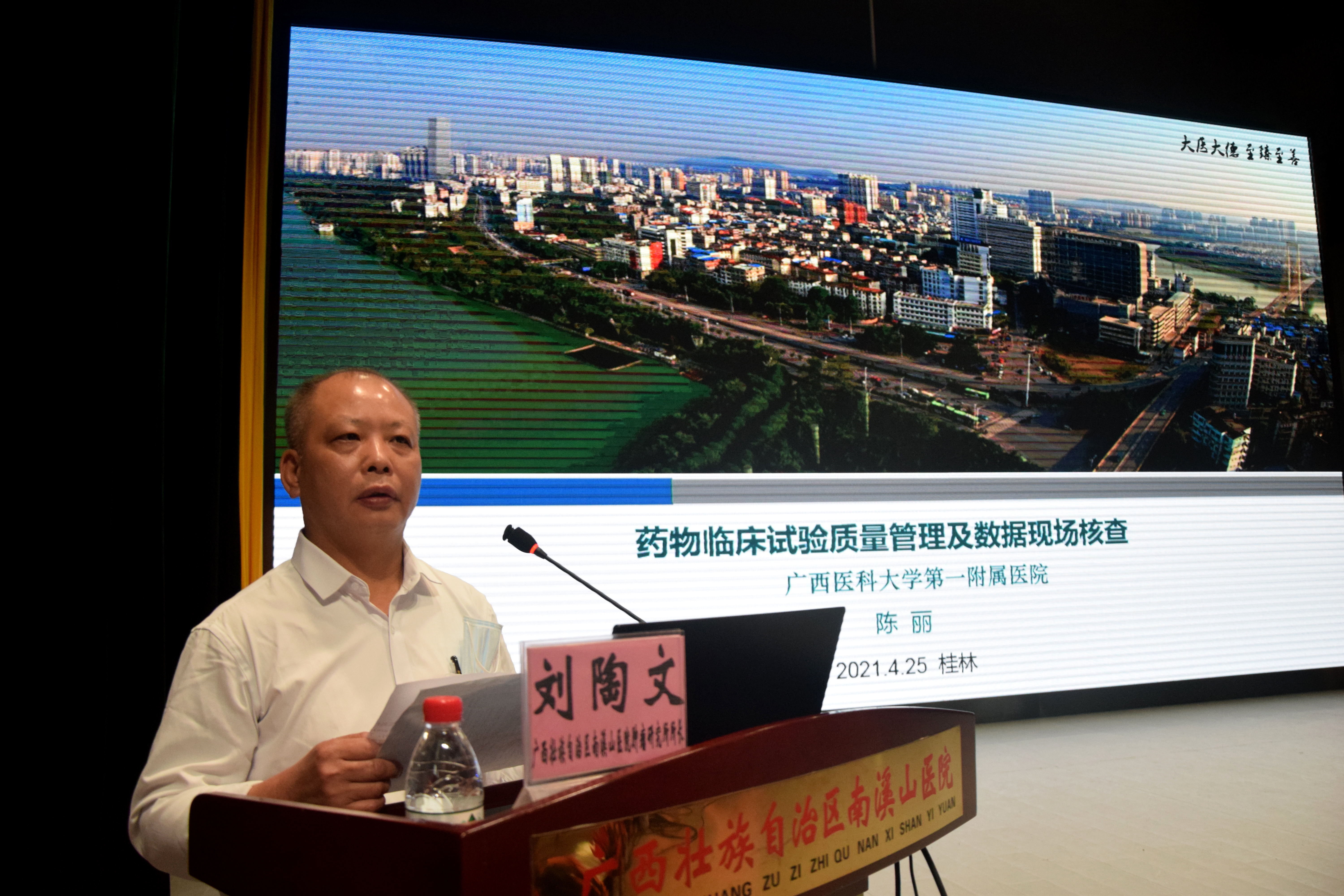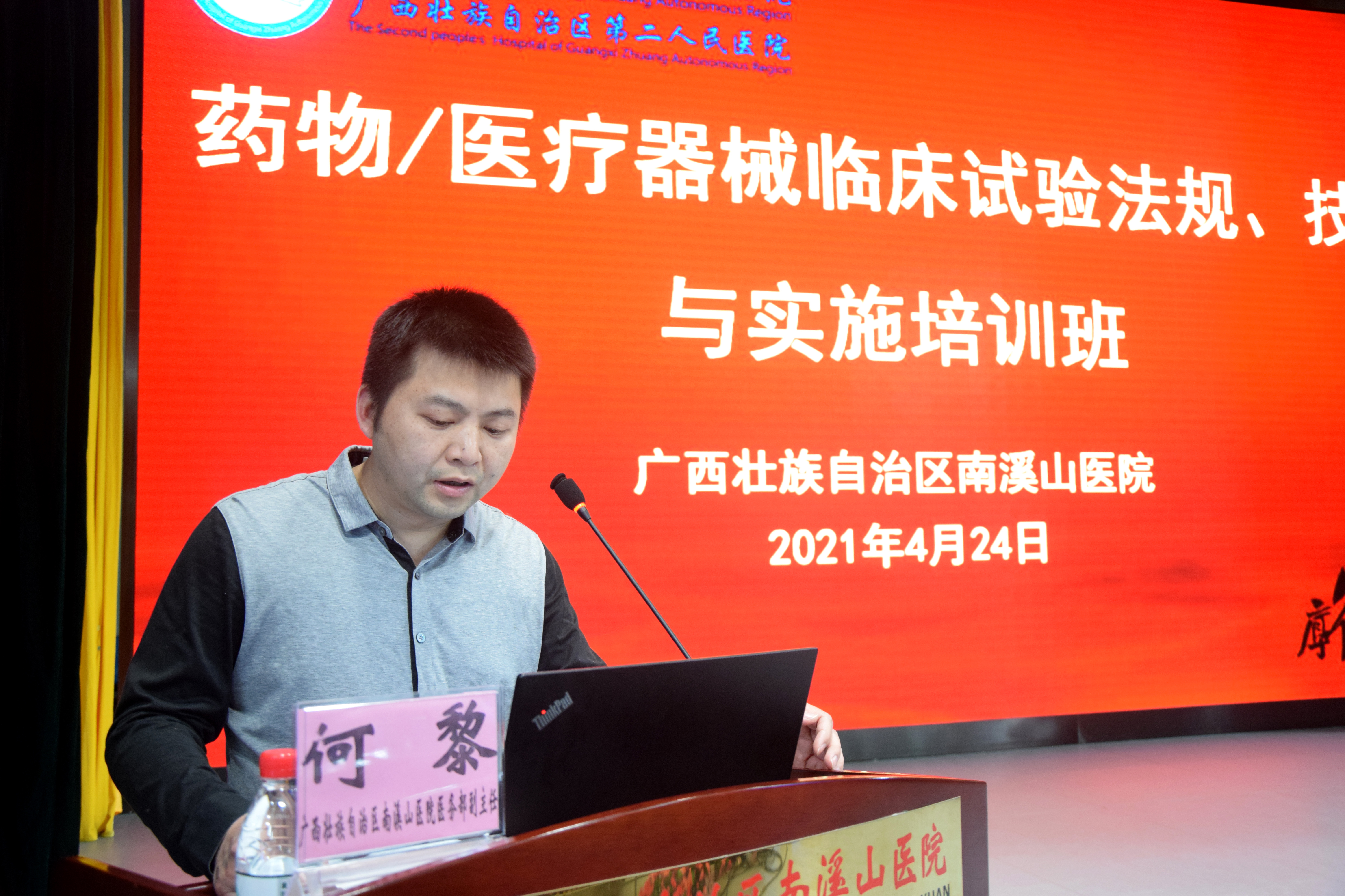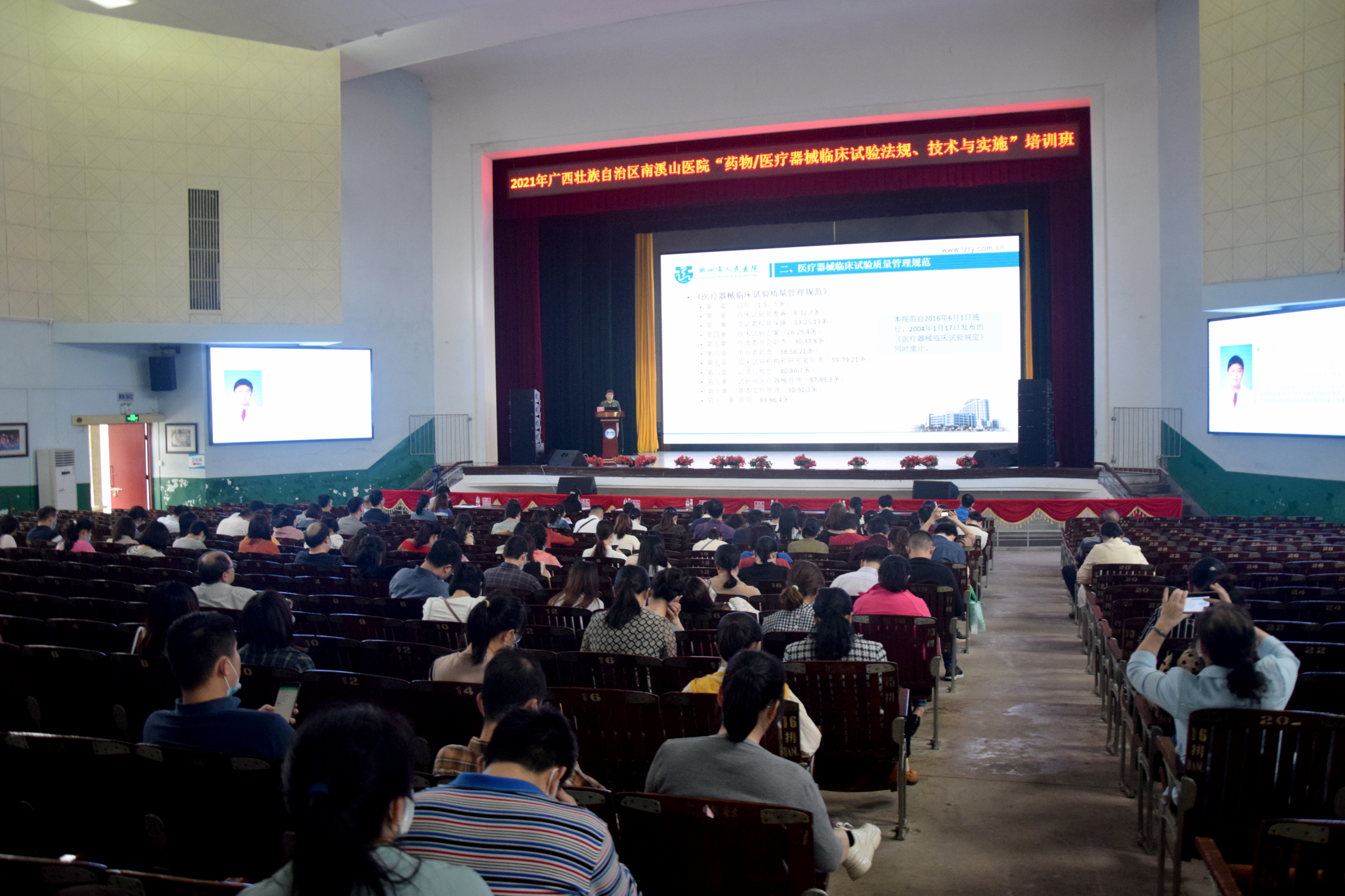 为快速推进药物临床试验机构建设,4 月 24 日-25 日,广西壮族自治区南溪山医院在该院大礼堂成功举办了「药物/医疗器械临床试验法规、技术与实施」培训班,医院 250 余名医务人员参加本次培训班,院党委书记戴前富和副院长蒋广元出席活动。