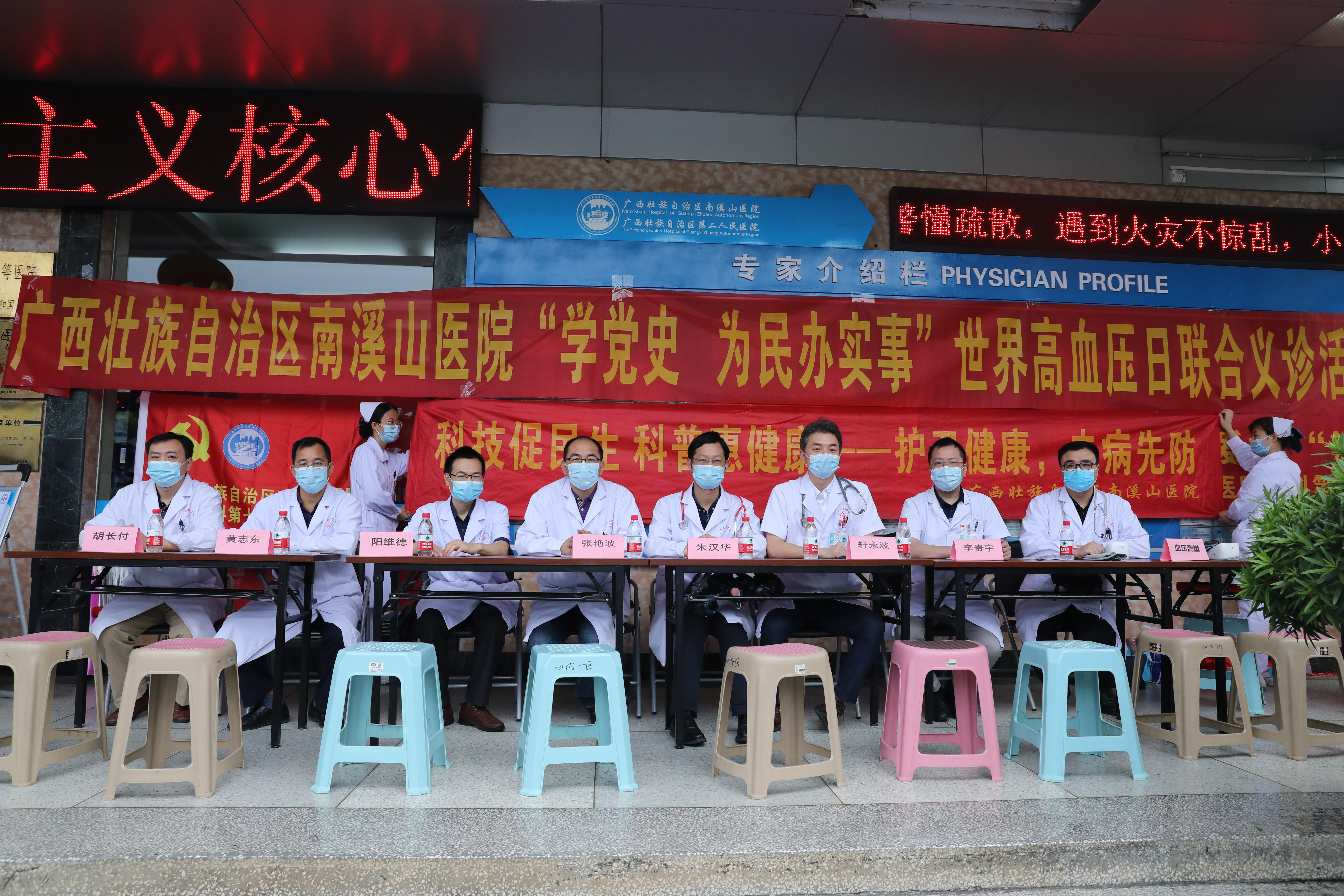 5 月 17 日是「世界高血压日」,为助力国家心脑血管防治行动的措施,提高居民高血压防治意识和危害意识,提升高血压疾病知识的知晓率和普及率,引导患者科学自我管理,降低高血压发生风险,当天上午,广西壮族自治区南溪山医院联合各家医联体单位开展「学党史 为民办实事」世界高血压日联合义诊活动。