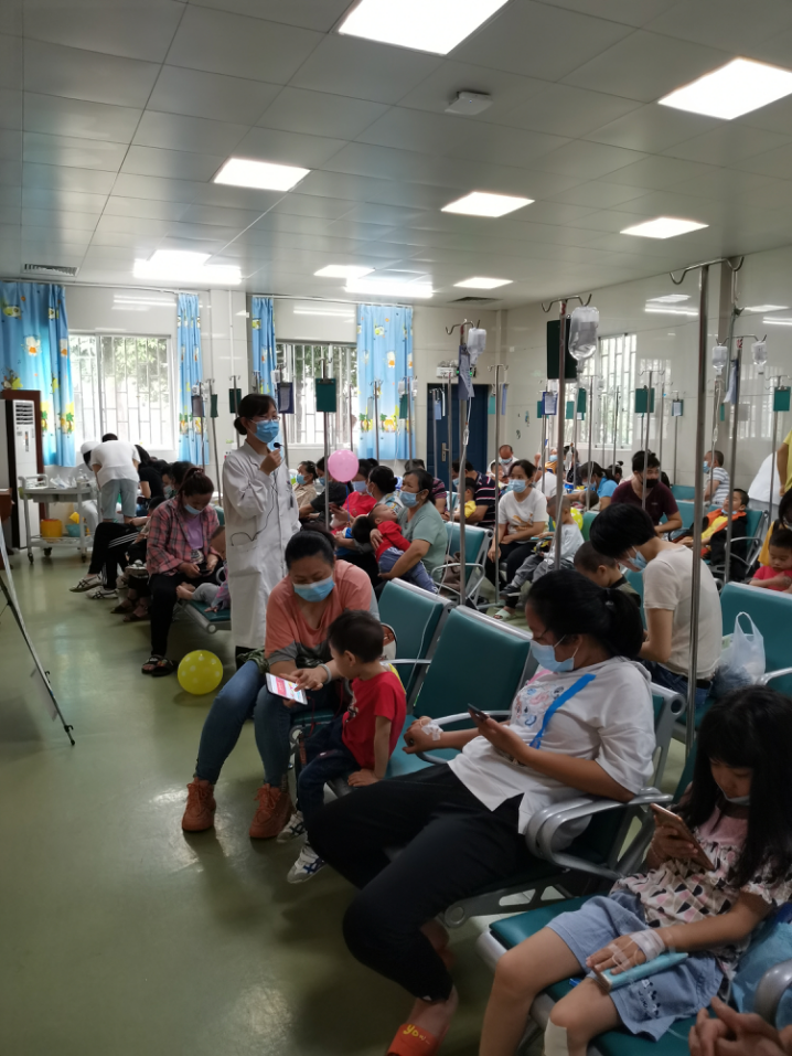 儿科主治医师李娟在门诊输液室给患儿家属讲解儿童身高管理的课程。她表示,现在越来越多的家长开始关注自己孩子的生长发育,特别是身高问题。大多数家长喜欢用孩子父母平均身高来推测孩子未来身高,事实上,父母遗传身高占 70%,但后天的环境因素占 30%,现在只需要拍一张关于手腕的 X 光片进行骨龄评价,才能明确孩子的身高是早长还是晚长。