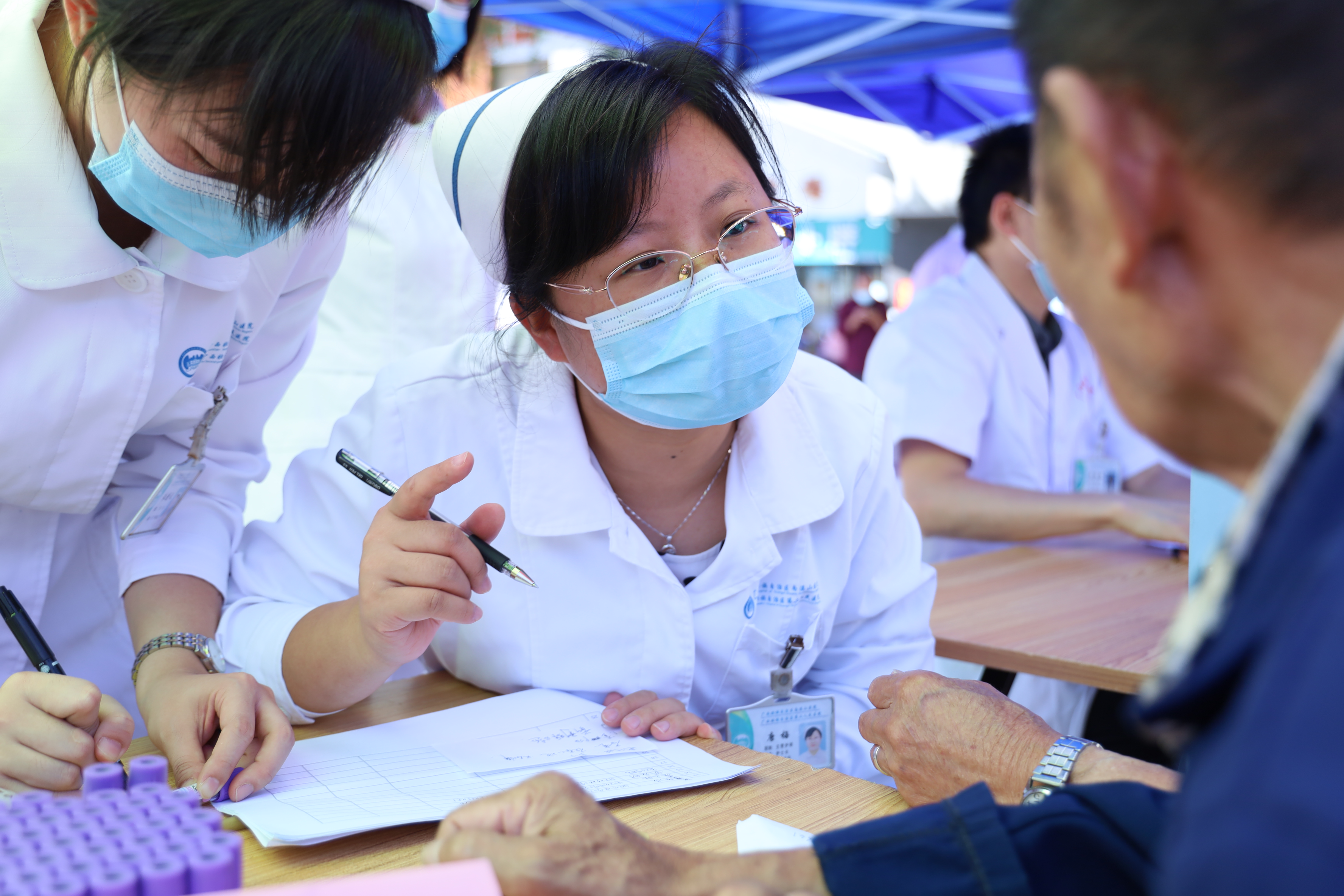 区南溪山医院泌尿外科护士朱晓秋正在为群众抽血进行前列腺筛查