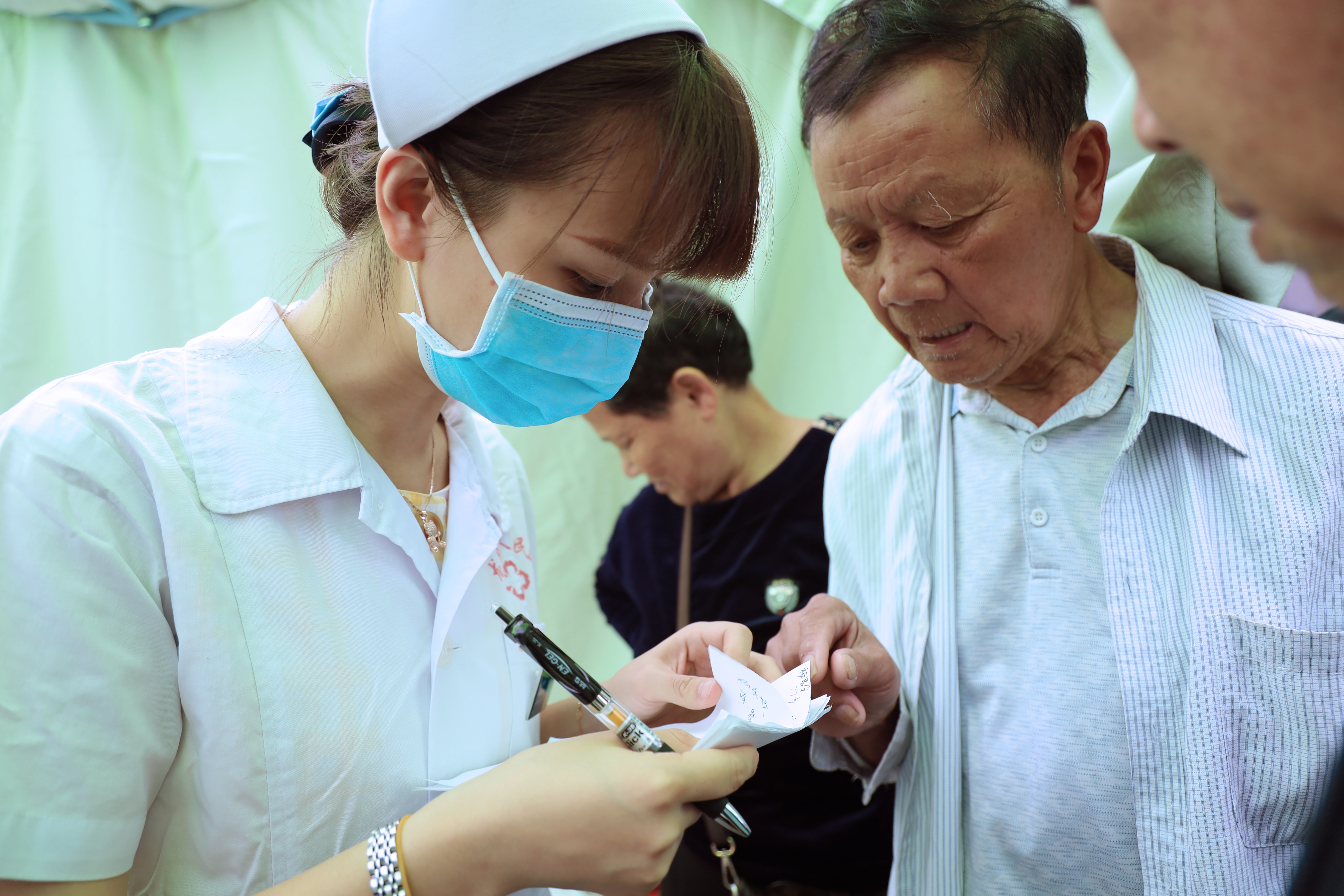 区南溪山医院泌尿外科护士长唐梅正在为群众进行登记